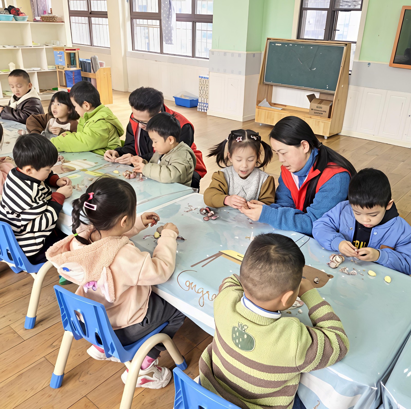 現(xiàn)場(chǎng)暖意融融,社區(qū)工作人員與志愿者早已提前備好糯米、紅豆、蓮子、紅棗、桂圓等臘八粥食材,以及制作臘八蒜所需的大蒜、米醋等物品,靜靜等候小朋友們的到來(lái)。孩子們牽著家長(zhǎng)的手,滿懷好奇與期待走進(jìn)活動(dòng)場(chǎng)地,一雙雙亮晶晶的眼睛里,滿是對(duì)這場(chǎng)民俗體驗(yàn)的向往。幼兒園老師化身“民俗講解員”,為小朋友們細(xì)致講解臘八節(jié)的由來(lái)與習(xí)俗。從“臘祭祈?!钡墓爬蟼鹘y(tǒng),到臘八粥、臘八蒜所蘊(yùn)含的美好寓意,再到家家戶戶過(guò)臘八、盼新年的真摯期許,孩子們聽(tīng)得津津有味,還時(shí)不時(shí)舉手提問(wèn),在互動(dòng)交流中加深了對(duì)傳統(tǒng)節(jié)日的認(rèn)知。制作臘八粥環(huán)節(jié)堪稱全場(chǎng)最熱鬧的時(shí)刻。在志愿者和老師的耐心指導(dǎo)下,小朋友們化身“小小美食家”,挽起袖子,小心翼翼地分揀各類食材。有的認(rèn)真挑出紅棗核,有的主動(dòng)幫小伙伴遞拿食材,小手雖忙個(gè)不停,臉上卻始終洋溢著燦爛的笑容。家長(zhǎng)們?cè)谝慌再N心協(xié)助,手把手教孩子操作,溫馨的親子互動(dòng)畫(huà)面,成為活動(dòng)中最動(dòng)人的風(fēng)景。