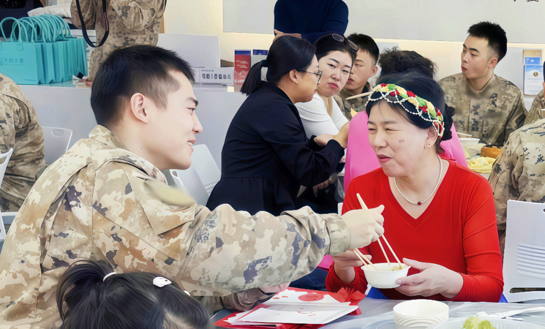 14組“共建家庭”參加了活動(dòng),“兵媽媽”以溫柔母愛撫慰官兵思鄉(xiāng)之緒,“兵兒子”以軍人擔(dān)當(dāng)守護(hù)歲月靜好,更以暖心陪伴呵護(hù)孩童純真。正澤堂李教授為老人提供了中醫(yī)問診與健康指導(dǎo),官兵們細(xì)心陪伴在側(cè),傾聽關(guān)懷;朝朝鮮族藥膳師李美善講解了“藥食同源”文化,并示范藥膳餃子與特色小菜的制作方法。“兵兒子”主動(dòng)揉面搟皮,“兵媽媽”手把手教著捏褶,孩子們也興致勃勃地參與其中,還帶來了精彩的互動(dòng)表演,并將精心繪制的新年卡片送到了兵哥哥手中。熱氣騰騰的餃子上桌后,“兵兒子”細(xì)心為“兵媽媽”夾菜,孩子也將餃子輕輕遞給陪伴一旁的兵哥哥,這一刻,暖意從舌尖漫至心底,軍民魚水一家親的幸福畫卷愈加生動(dòng)。