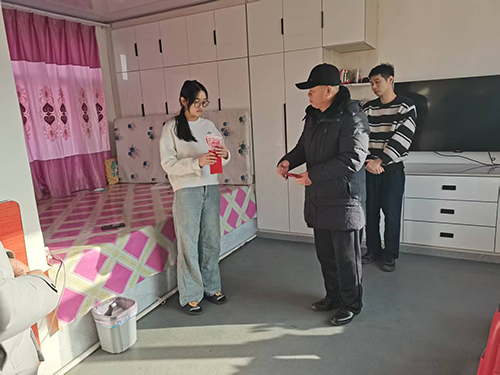 在王玉升同學家中,慰問組看到他雖家庭困難卻精神飽滿、樂觀向上。王玉升主動分享學習計劃與人生目標,言語間滿是感恩,表態(tài)將把關愛轉化為動力,刻苦鉆研、奮勇爭先,以實際行動回報社會厚愛。