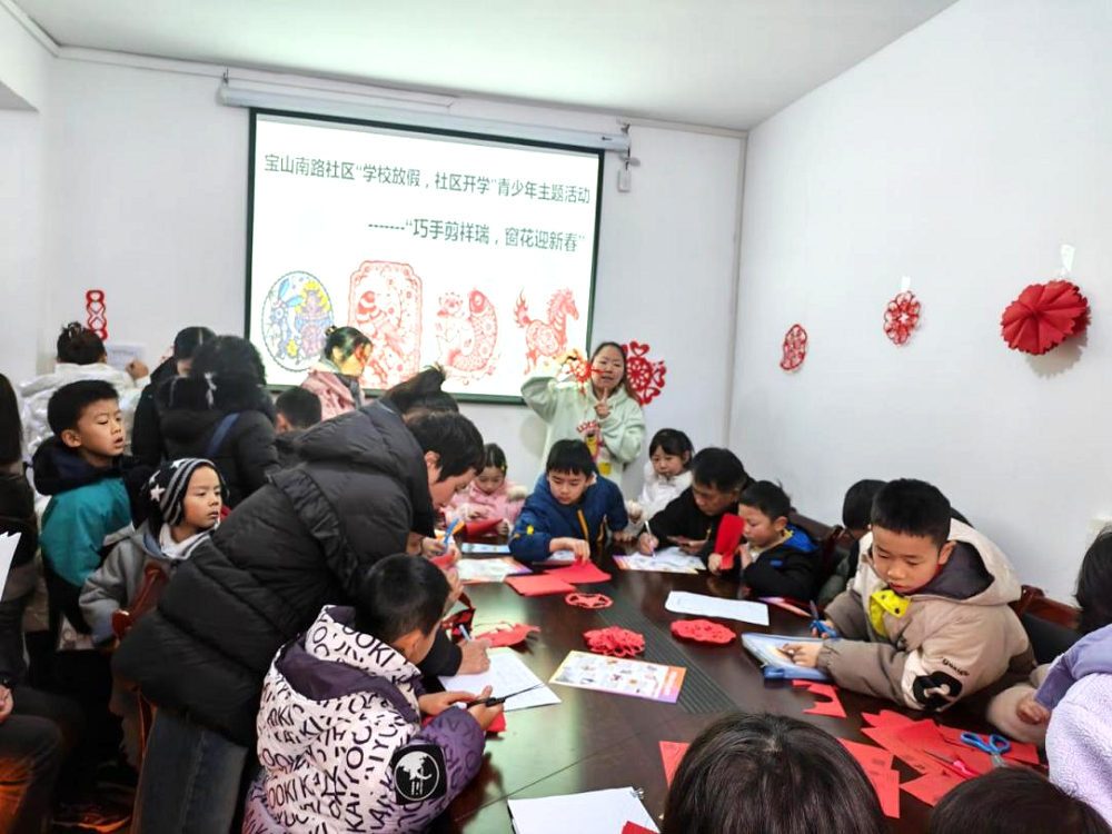 學校放假,社區(qū)開學。1月27日,寶山南路社區(qū)活動室內暖意融融、笑語陣陣,一場融合非遺傳承與假期安全教育的剪紙活動拉開帷幕。30余名放假學生齊聚一堂,在社區(qū)志愿者帶領下,共同體驗剪紙藝術的魅力,筑牢假期安全意識。