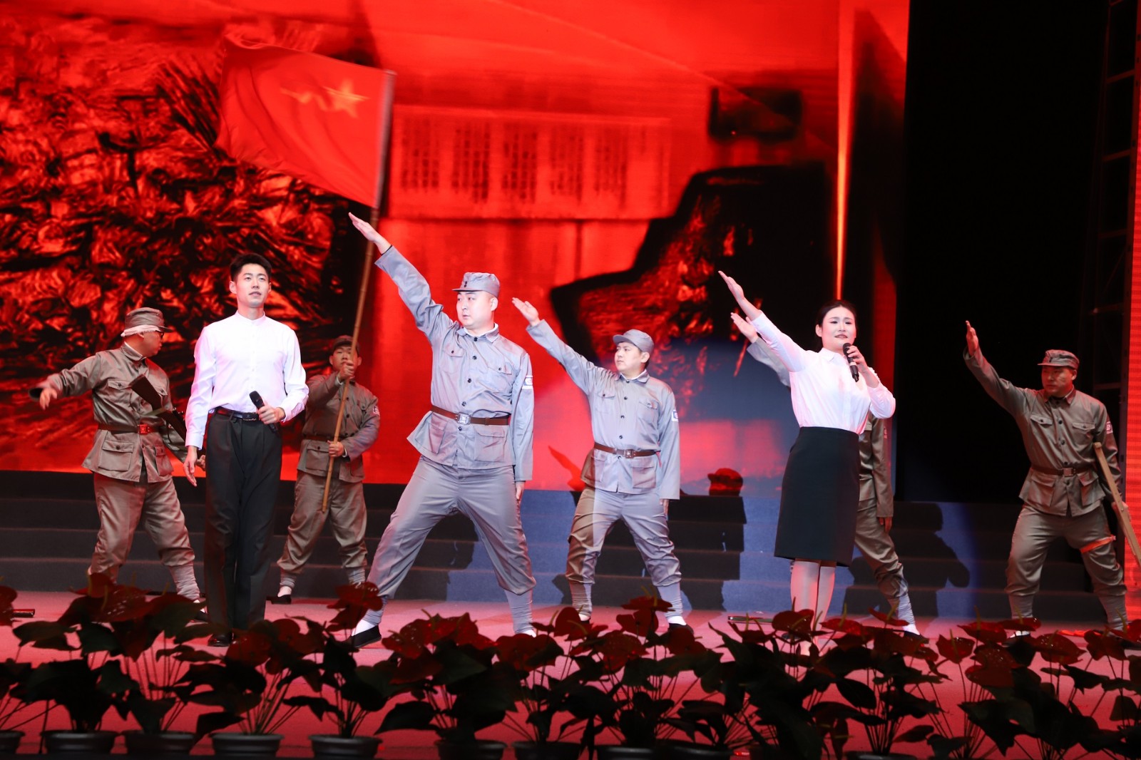 青年歌手付鵬、尤麗嬌、王東、劉沙、馮思琪、李明宇聯(lián)袂獻唱,七星泡農場、鶴山農場、九三第二幼兒園演員伴舞的歌曲聯(lián)唱《常回家看看》《三百六十五個祝?!贰对谙M奶镆吧稀罚捎茡P、溫情滿滿,將晚會氛圍推向高潮,臺下掌聲雷動、喝彩不斷。由分公司關工委常務主任岳靜華創(chuàng)作、七星泡農場表演的群口快板《豆都又是豐收年》,節(jié)奏明快、朗朗上口,既贊美了默默耕耘、無私奉獻的勞動者,也彰顯了九三大豆品牌的硬核價值,歌頌了大豆產業(yè)蓬勃發(fā)展為九三人民帶來的幸福生活與喜人變化。李明宇與鶴山農場演員合作的歌伴舞《北大荒人的歌》,深情詮釋出九三兒女和所有北大荒人熱愛墾區(qū)、建設墾區(qū)、繁榮墾區(qū)的赤誠心聲與堅定信念。榮軍農場帶來的情景劇《榮軍之歌》,生動再現(xiàn)了老一輩榮軍人開荒建場時自力更生、艱苦創(chuàng)業(yè)、勇于開拓、甘于奉獻的崢嶸歲月,讓現(xiàn)場觀眾深受感動與鼓舞。建邊農場、嫩江農場攜手帶來的現(xiàn)代舞《一起向未來》與男聲小合唱《眾人劃槳開大船》,以昂揚的姿態(tài)、奮進的旋律,抒發(fā)了九三人民凝心聚力、勇往直前、追求卓越的美好心愿與奮進豪情。最終,整臺晚會在歌伴舞《再一次出發(fā)》的激昂旋律中圓滿落幕。