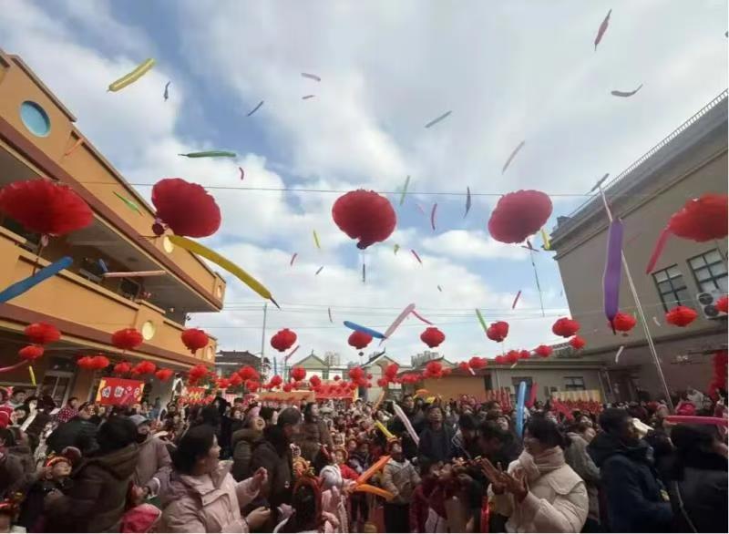 “五、四、三、二、一!”隨著倒計時吶喊,五顏六色的飛天氣球在空中一馬當(dāng)先,如花綻放,年貨大街活動正式開市啦!