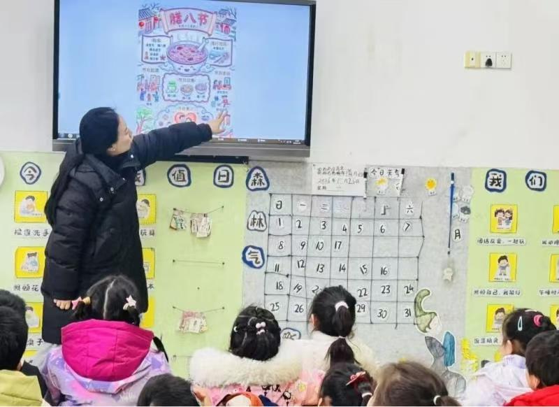 活動中,老師們利用升旗儀式、視頻、圖片、故事、童謠等形式,用孩子聽得懂的語言,讓孩子深入了解認(rèn)識臘八節(jié)的美食和習(xí)俗。
