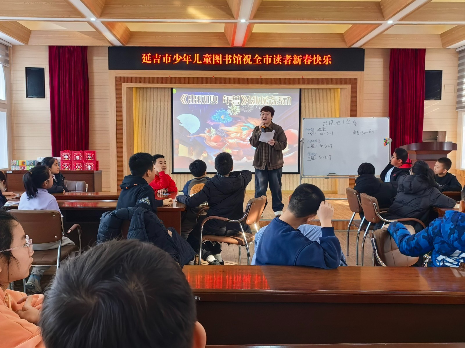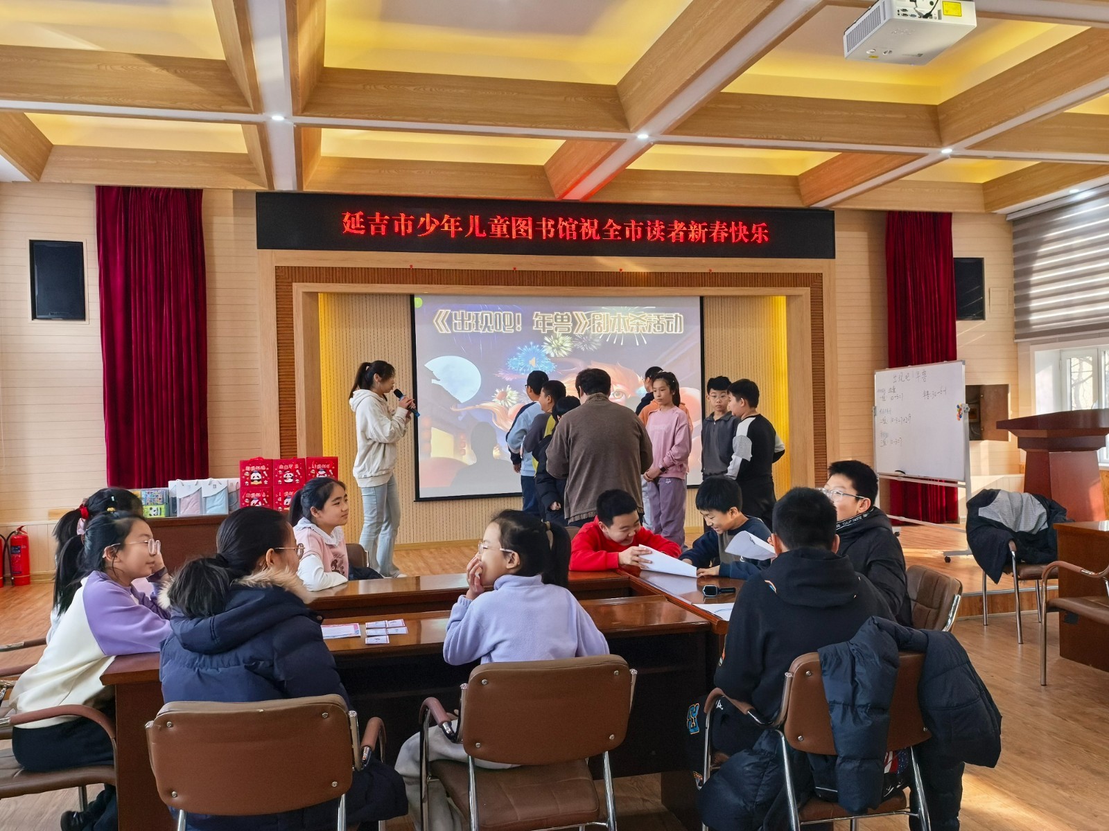 2月1日,《出現(xiàn)吧,年獸》劇本殺活動(dòng)在延吉市少年兒童圖書館順利舉辦。本次活動(dòng)以春節(jié)民俗文化為核心,圍繞“年獸傳說”打造沉浸式推理體驗(yàn),吸引了 27 名小朋友積極參與,現(xiàn)場(chǎng)氛圍熱烈高漲,收獲了參與者的一致好評(píng)。