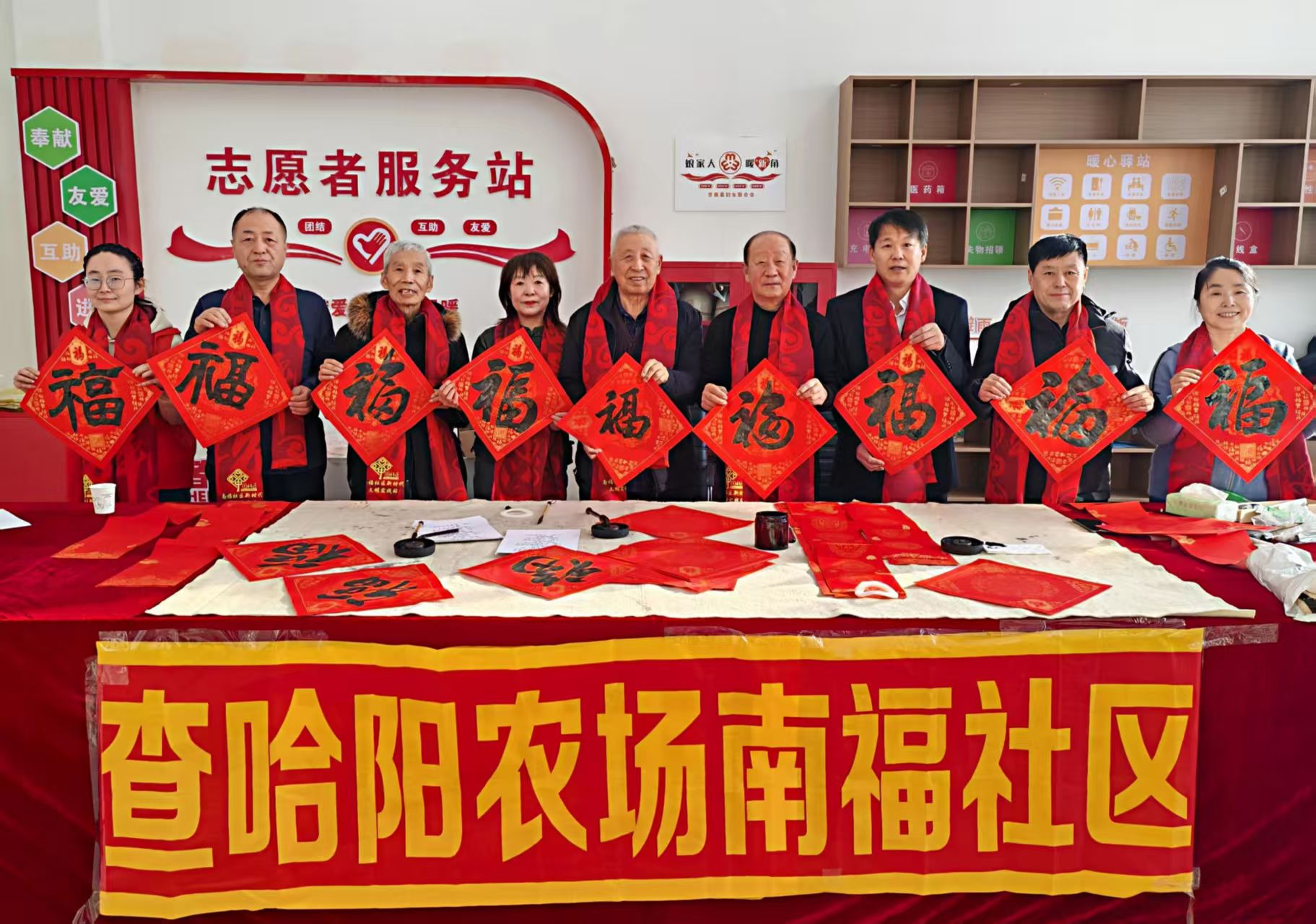 瑞雪迎新春,墨香潤(rùn)民心。2月5日,查哈陽(yáng)農(nóng)場(chǎng)關(guān)工委攜手南府社區(qū)、派出所“雙陽(yáng)工作站”開(kāi)展了“墨香迎新春 送福進(jìn)萬(wàn)家”主題活動(dòng),農(nóng)場(chǎng)關(guān)工委常務(wù)主任劉喜貴、老促會(huì)會(huì)長(zhǎng)馬明遠(yuǎn)、場(chǎng)史辦負(fù)責(zé)人曹培杰、甘南縣黨工委副書(shū)記韓富紅及部分“五老”代表、南福社區(qū)工作人員、青年志愿者和職工群眾100余人參加了活動(dòng)。