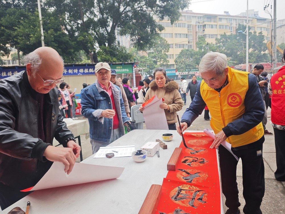 金蛇辭舊歲,駿馬報(bào)新春。為弘揚(yáng)中華優(yōu)秀傳統(tǒng)文化,營(yíng)造喜慶祥和、溫馨和諧的節(jié)日氛圍,2月5日上午,廣西壯族自治區(qū)柳州市魚(yú)峰區(qū)五里亭街道陽(yáng)光社區(qū)關(guān)工領(lǐng)導(dǎo)小組聯(lián)合轄區(qū)企業(yè)錦桂樓餅家,共同舉辦“駿馬馳騁迎新春 鄰里歡聚慶團(tuán)圓”迎新春系列活動(dòng),將寫(xiě)春聯(lián)、做禮餅等內(nèi)容融為一體,可以在家門(mén)口感受濃濃年味,共享新春喜悅。