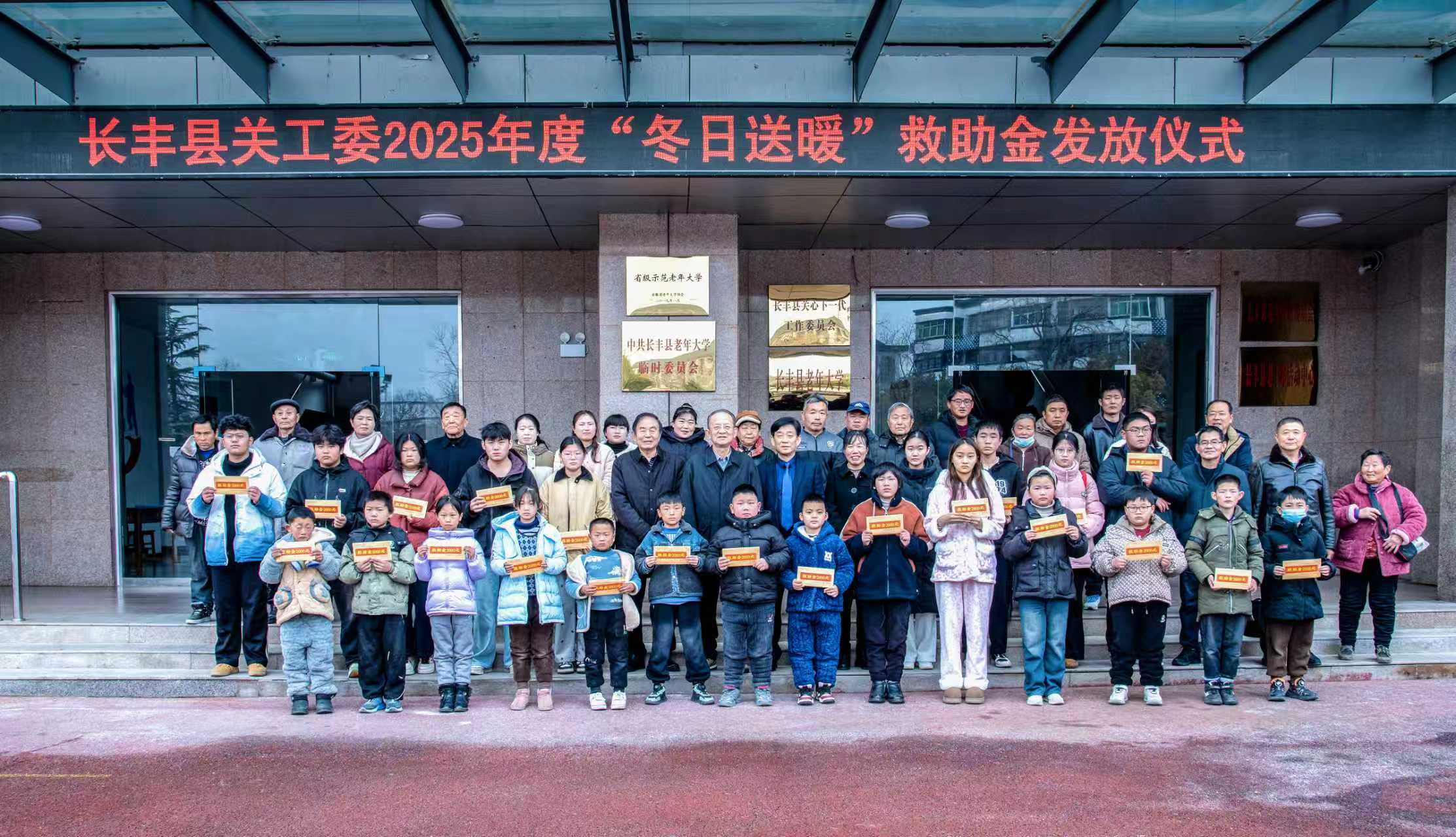 2月5日上午,長豐縣關(guān)工委2025年度“冬日送暖”救助金發(fā)放儀式在縣老年大學(xué)舉行,縣關(guān)工委主任顧義勇、副主任童有柱參加。