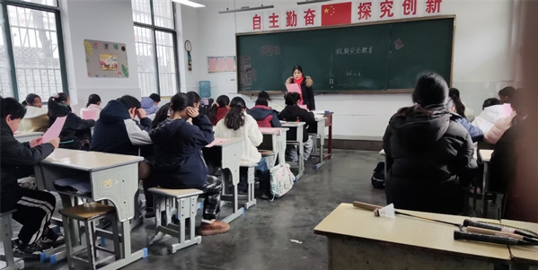 班會課上,各班主任圍繞寒假與春節(jié)期間的安全風(fēng)險,結(jié)合典型案例、情景模擬、互動問答等形式,開展全方位安全知識宣講。重點(diǎn)講解交通安全,提醒學(xué)生遵守交通規(guī)則,不乘坐無牌無證、超員超載車輛,未滿法定年齡不騎行自行車、電動車;強(qiáng)化居家安全教育,普及安全用電、規(guī)范用火、防范一氧化碳中毒、防火防盜等常識,明確嚴(yán)禁玩火、私拉亂接電線等危險行為;聚焦冬季防溺水,重申防溺水“六不”原則,告誡學(xué)生遠(yuǎn)離河塘、水庫、冰面等危險水域,掌握科學(xué)求救與避險方法;針對節(jié)日安全,宣講煙花爆竹禁燃禁放政策,引導(dǎo)學(xué)生文明過節(jié);同時覆蓋網(wǎng)絡(luò)安全、防拐防騙、食品安全、心理健康等內(nèi)容,教會學(xué)生辨別風(fēng)險、自我保護(hù)、及時求助。班會現(xiàn)場,各班統(tǒng)一發(fā)放《寒假安全告家長書》,班主任帶領(lǐng)學(xué)生逐條學(xué)習(xí)核心條款,并指導(dǎo)學(xué)生將告家長書轉(zhuǎn)交家長,督促家長認(rèn)真閱讀、簽字確認(rèn),切實(shí)履行假期監(jiān)護(hù)第一責(zé)任人職責(zé)。告家長書明確列出假期安全注意事項(xiàng)、家校聯(lián)動要求,呼吁家長加強(qiáng)對孩子外出、上網(wǎng)、作息、社交的全程監(jiān)管,配合學(xué)校做好安全提醒與隱患排查,共同織密家庭安全防護(hù)網(wǎng)。