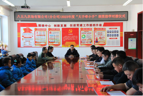 1月3日,八五九農(nóng)場有限公司關(guān)工委聯(lián)合學校開展了2023年度“大手牽小手”捐資助學活動,八五九農(nóng)場有限公司黨委委員、黨群工作部部長喬丹、關(guān)工委、學校領(lǐng)導及社會愛心人士、受資助的學生40余人參加了活動。