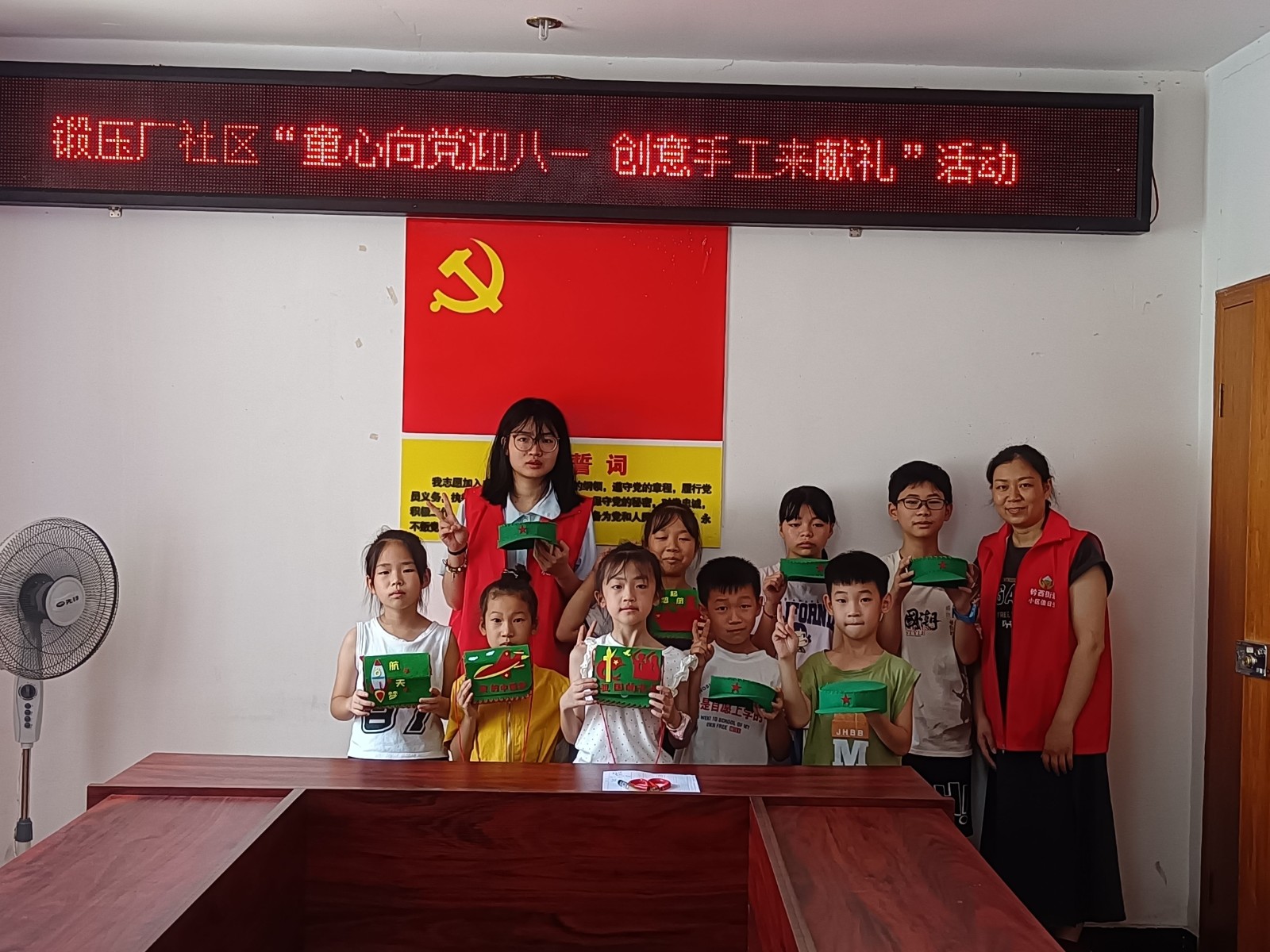 7月24日,江西省新余市分宜縣鈐西街道鍛壓廠社區(qū)關(guān)工委組織轄區(qū)兒童開展“童心向黨迎八一,創(chuàng)意手工來獻(xiàn)禮”青少年手工制作活動(dòng)。