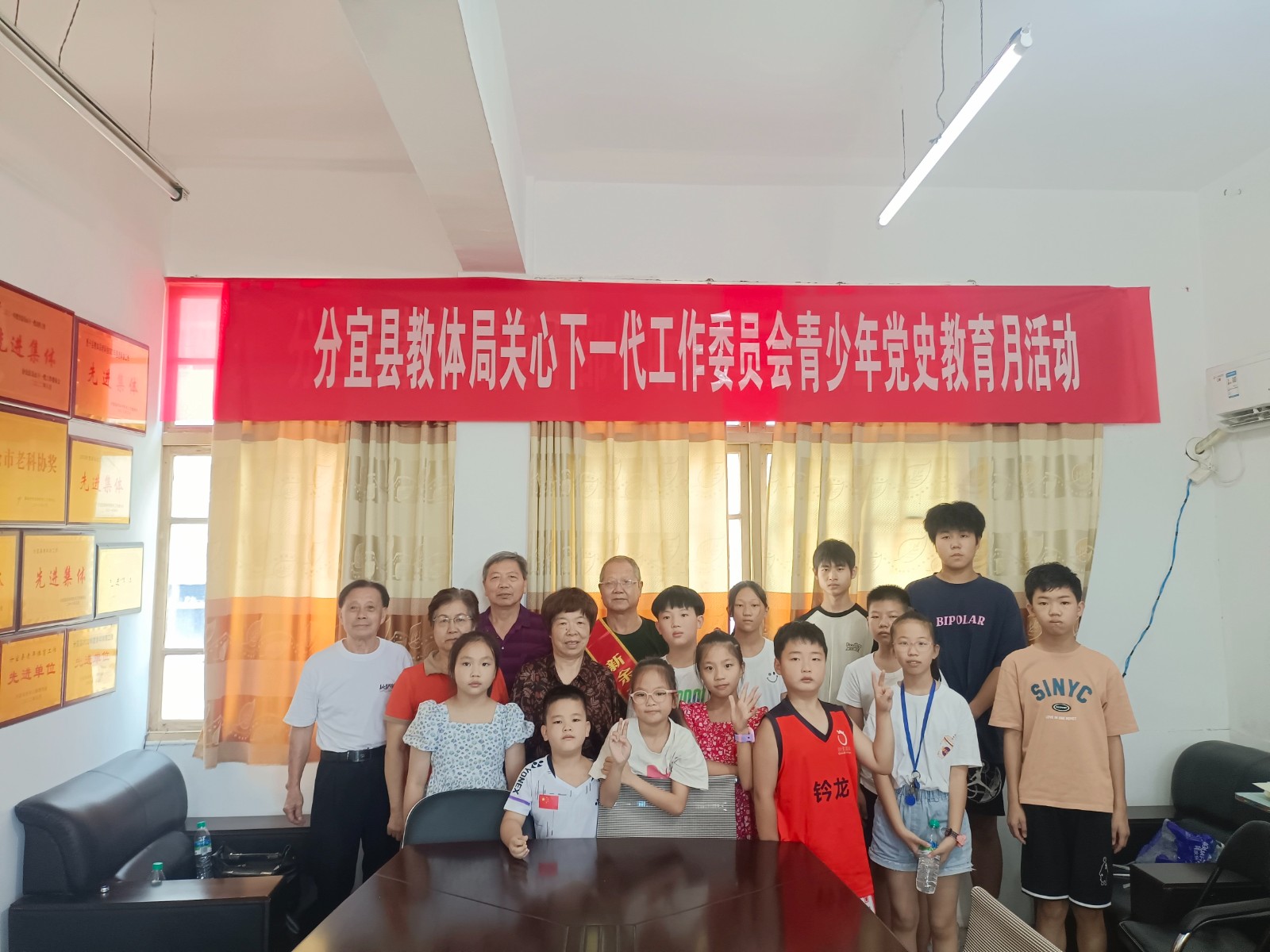 8月2日,江西省新余市分宜縣教體局關工委舉辦“青少年黨史學習月”老兵宣講會活動,縣關工委主任易榮秀到會指導,縣教體局機關大院12名青少年參加宣講會。