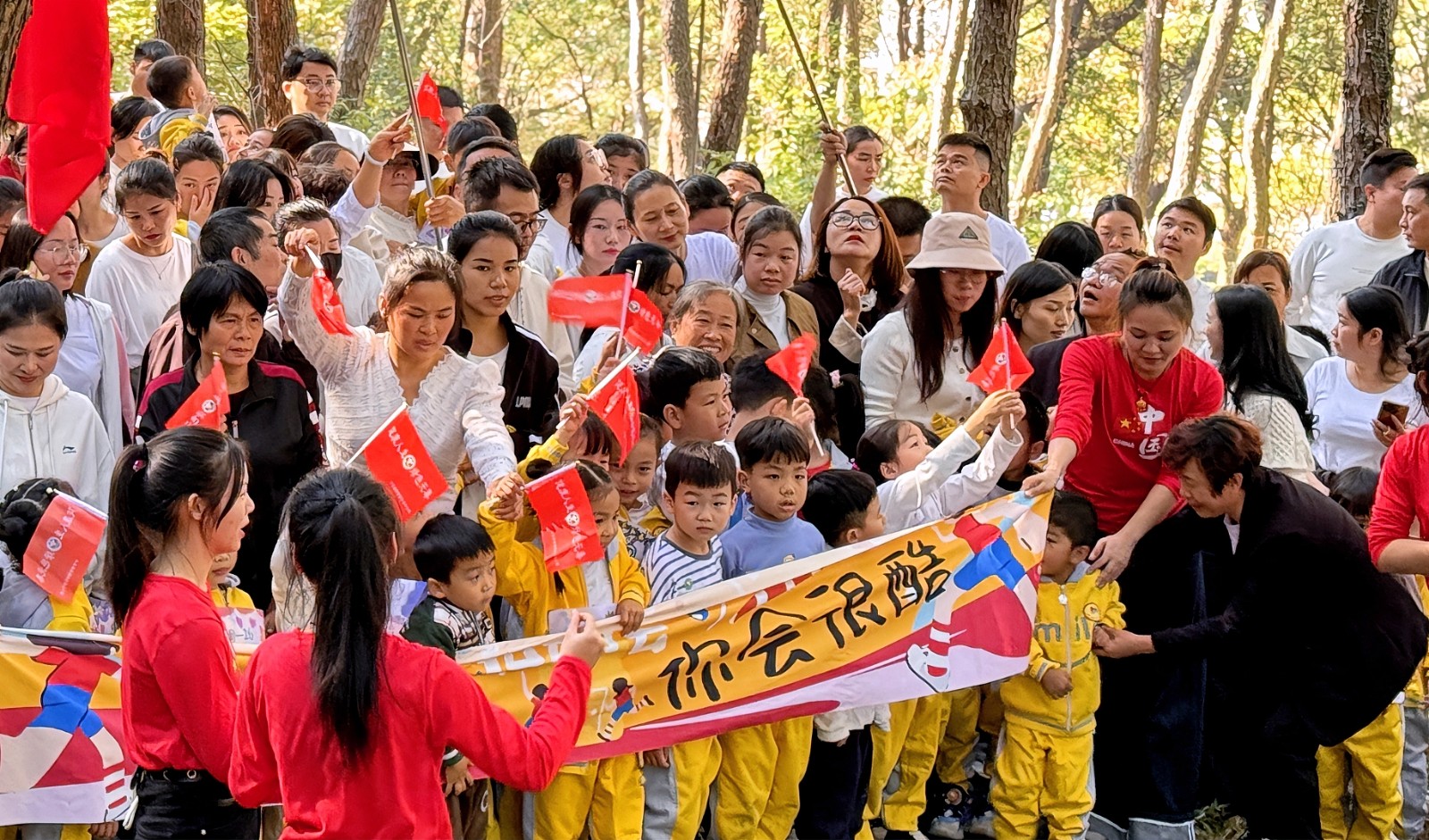 活動現(xiàn)場,家長與小朋友們手持 “珍愛生命、遠離毒品” 的小旗幟,在莊崗嶺公園活力開跑,構成了一道道絢麗的風景線。