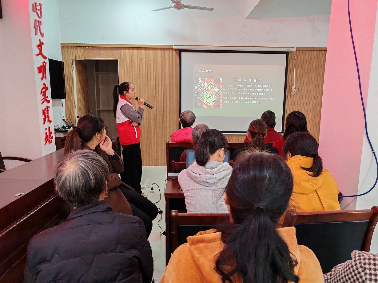 為豐富轄區(qū)居民保健養(yǎng)生知識,提高自我保健意識和健康水平。12月10日下午,江西省新余市渝水區(qū)城北街道平安路社區(qū)關(guān)工委聯(lián)合渝水區(qū)紅十字會開展“冬季話養(yǎng)生 健康進(jìn)萬家”健康知識講座,吸引了40余名轄區(qū)居民參加。