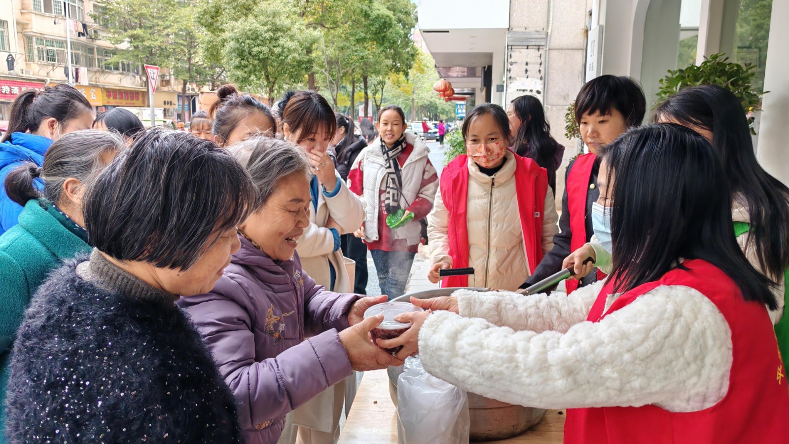 活動當(dāng)天,社區(qū)工作人員將提前泡好的臘八粥食材進(jìn)行熬制,經(jīng)過兩個多小時的文火慢熬,香氣撲鼻的臘八粥出鍋了。并在幸福食堂門口設(shè)置點(diǎn)位,現(xiàn)場為居民發(fā)放臘八粥,居民們在志愿者的引導(dǎo)下有序排隊領(lǐng)取,盡管只是一碗小小的粥,但捎去的是社區(qū)帶給居民的關(guān)愛和問候,是暖到居民心窩里的溫情和祝福,居民手里拿著香氣撲鼻的臘八粥,個個臉上都洋溢著燦爛幸福的笑容。同時,志愿者還為轄區(qū)內(nèi)行動不便的老人開展了特別的“粥”到服務(wù),把帶著溫暖和祝福的粥送到居民家中。