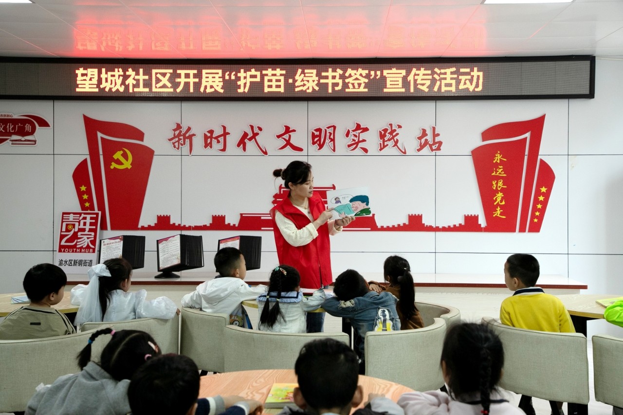 江西省新余市渝水區(qū)新鋼街道望城社區(qū)關(guān)工委聯(lián)合銀河澳美幼兒園開展“護(hù)苗·綠書簽”主題宣傳活動(dòng)