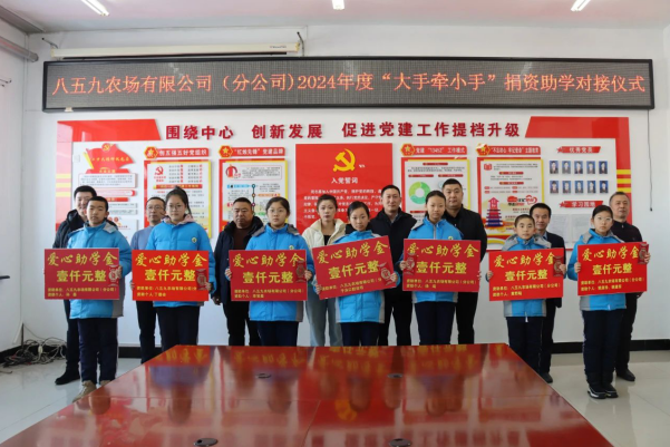 奉獻(xiàn)愛心、收獲希望。愛心助學(xué)是一項功在當(dāng)代、利在千秋的公益事業(yè),今后,八五九關(guān)工委還將持續(xù)開展“大手牽小手”捐助活動,動員更多的社會各界人士慷慨解囊、共同參與,將愛心傳遞下去,為青少年在助學(xué)、助困、助業(yè)等方面辦實事,解難事,關(guān)心關(guān)注他們的思想狀況,學(xué)習(xí)進(jìn)步,身心健康,為青少年成長成才創(chuàng)造良好環(huán)境,助力學(xué)生邁向更加美好的未來。