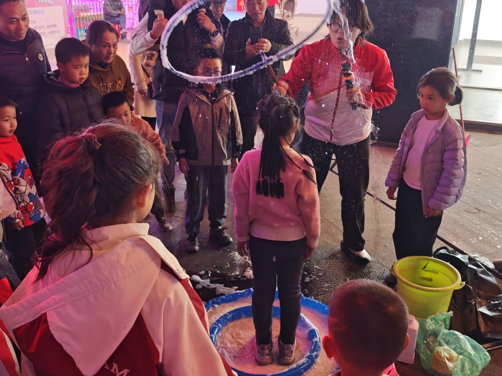 活動(dòng)在“五老”成員舞蹈隊(duì)活力滿滿的廣場(chǎng)舞《看江西》中開(kāi)場(chǎng),隊(duì)員們用躍動(dòng)舞步展現(xiàn)贛鄱生機(jī),臺(tái)下小朋友跟著節(jié)奏晃腦袋,家長(zhǎng)舉機(jī)記錄,親子互動(dòng)暖意融融。最受孩子歡迎的“科學(xué)秀”亮點(diǎn)紛呈:夢(mèng)幻泡泡秀裹住童聲笑語(yǔ);馬德堡半球?qū)嶒?yàn)里,孩子們擼袖合力拉球,憋紅臉喊“加油”;“逆流而上”實(shí)驗(yàn)中,水流沿管道向上奔涌,小不點(diǎn)兒踮腳探頭追問(wèn)“水咋會(huì)噴出來(lái)?”,科學(xué)的種子隨驚嘆生根。