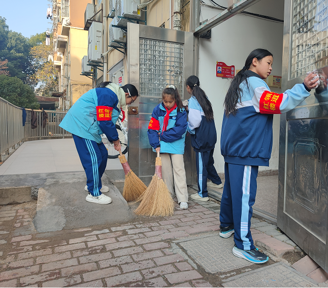 盡管天氣有些寒冷,但師生們的熱情絲毫不減。大家分工明確,配合默契,充分展現(xiàn)了不怕臟、不怕累的優(yōu)良作風(fēng)。孩子們稚嫩的臉龐上洋溢著認(rèn)真的神情,他們用自己小小的雙手,為小區(qū)的整潔美麗貢獻(xiàn)著力量。過(guò)往的居民看到這一幕,紛紛投來(lái)贊許的目光,有的甚至主動(dòng)加入到清潔隊(duì)伍中來(lái)。