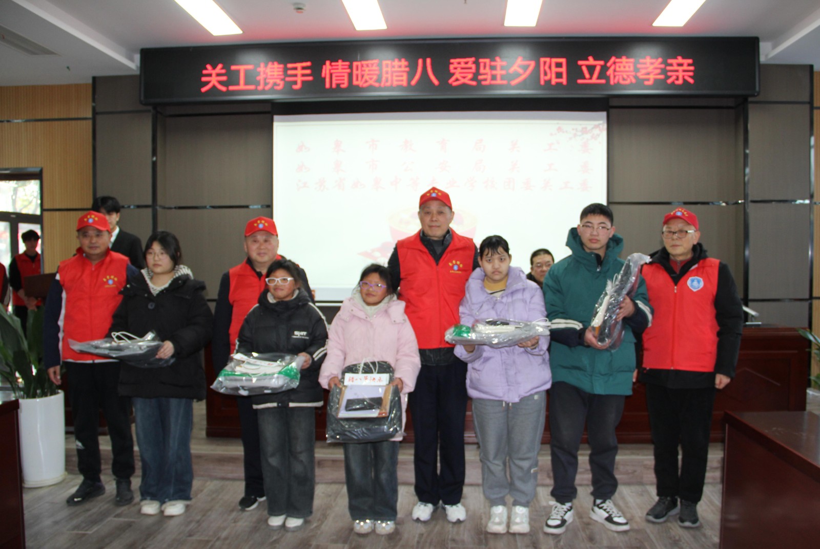 “愿天常生好人,愿人常行好事。”如皋東大街迎春橋上的百年對(duì)聯(lián),恰是這座世界長(zhǎng)壽鄉(xiāng)孝善文化的生動(dòng)注腳。歲至臘八,粥暖情長(zhǎng),在這個(gè)承載著團(tuán)圓期許與敬老傳統(tǒng)的節(jié)日來(lái)臨之際,1月22日下午,江蘇省如皋市公安局關(guān)工委聯(lián)合市教育局關(guān)工委、江蘇省如皋中等專業(yè)學(xué)校,組織“五老”志愿者、迎春派出所關(guān)工站民警代表走進(jìn)如皋市社會(huì)福利中心,落實(shí)中央十六部門聯(lián)合部署開(kāi)展的“把愛(ài)帶回家——暖心護(hù)航伴成長(zhǎng)”2026寒假兒童關(guān)愛(ài)服務(wù)活動(dòng)精神,以“關(guān)工攜手,情暖臘八,愛(ài)駐夕陽(yáng),立德孝親”為主題開(kāi)展專項(xiàng)活動(dòng),用銀齡擔(dān)當(dāng)與青春活力,為寒冬里的老人和孩子送上最真摯的溫暖,續(xù)寫著長(zhǎng)壽之鄉(xiāng)的溫情篇章。